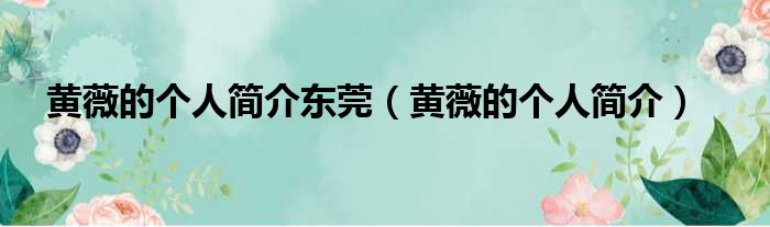 大家好,小东方来为大家解答以上的问题。黄薇的个人简介东莞,黄薇的个人简介这个很多人还不知道,现在让我们一起来看看吧!