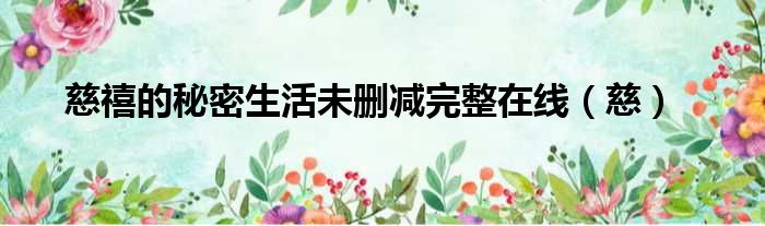大家好,小东方来为大家解答以上的问题。慈禧的秘密生活未删减完整在线,慈这个很多人还不知道,现在让我们一起来看看吧!