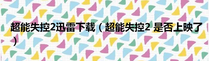 超能失控2迅雷下载(超能失控2 是否上映了)