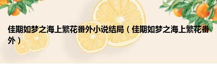 大家好,小东方来为大家解答以上的问题。佳期如梦之海上繁花番外小说结局,佳期如梦之海上繁花番外这个很多人还不知道,现在让我们一起来看看吧!