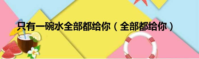大家好,小东方来为大家解答以上的问题。只有一碗水全部都给你,全部都给你这个很多人还不知道,现在让我们一起来看看吧!
