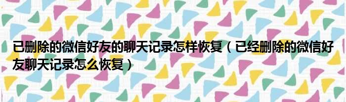 已删除的微信好友的聊天记录怎样恢复(已经删除的微信好友聊天记录怎么恢复)