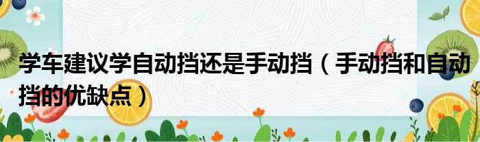 学车建议学自动挡还是手动挡(手动挡和自动挡的优缺点)