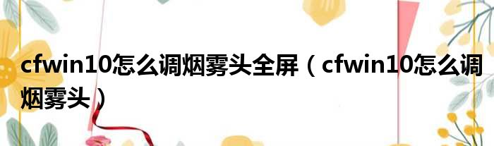 cfwin10怎么调烟雾头全屏(cfwin10怎么调烟雾头)