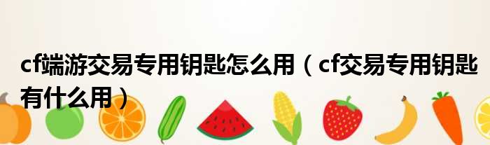 cf端游交易专用钥匙怎么用(cf交易专用钥匙有什么用)