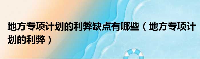 地方专项计划的利弊缺点有哪些(地方专项计划的利弊)