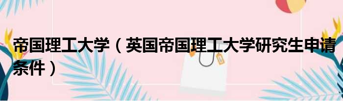 帝国理工大学(英国帝国理工大学研究生申请条件)
