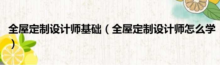 全屋定制设计师基础(全屋定制设计师怎么学)