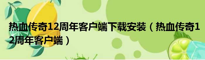 热血传奇12周年客户端下载安装(热血传奇12周年客户端)