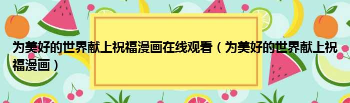 大家好,小东方来为大家解答以上的问题。为美好的世界献上祝福漫画在线观看,为美好的世界献上祝福漫画这个很多人还不知道,现在让我们一起来看看吧!