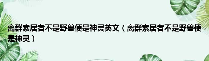 离群索居者不是野兽便是神灵英文(离群索居者不是野兽便是神灵)