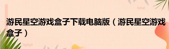 游民星空游戏盒子下载电脑版(游民星空游戏盒子)