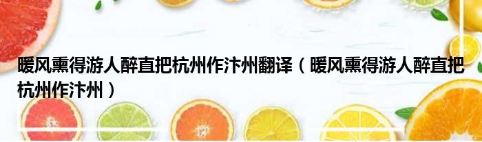 暖风熏得游人醉直把杭州作汴州翻译(暖风熏得游人醉直把杭州作汴州)