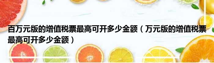 百万元版的增值税票最高可开多少金额(万元版的增值税票最高可开多少金额)
