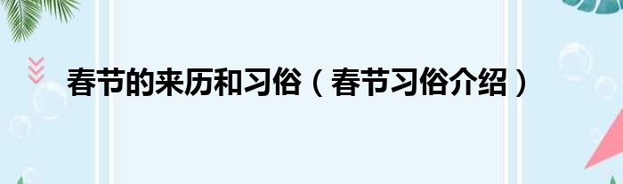 春节的来历和习俗(春节习俗介绍)