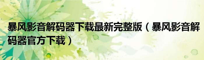 暴风影音解码器下载最新完整版(暴风影音解码器官方下载)