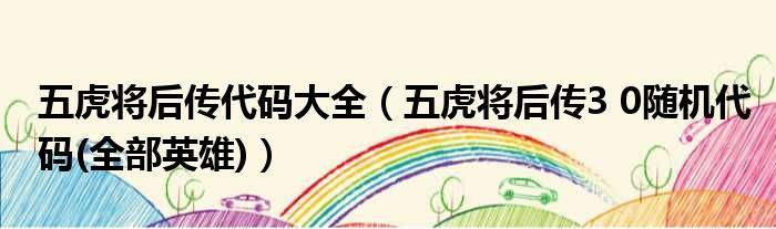 五虎将后传代码大全(五虎将后传3 0随机代码(全部英雄))
