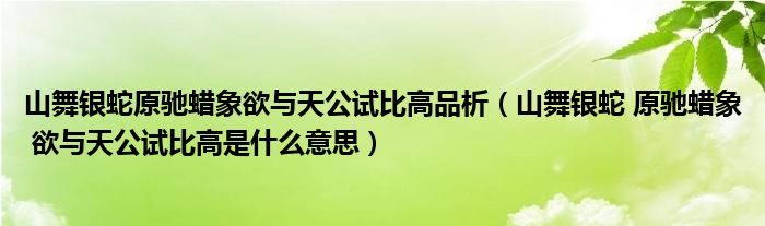 大家好,小东方来为大家解答以上的问题。山舞银蛇原驰蜡象欲与天公试比高品析,山舞银蛇 原驰蜡象 欲与天公试比高是什么意思这个很多人还不知道,现在让我们一起来看看吧!
