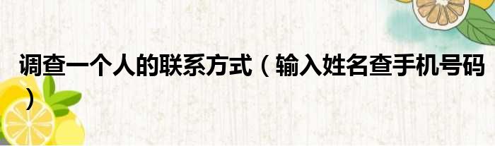 大家好,小东方来为大家解答以上的问题。调查一个人的联系方式,输入姓名查手机号码这个很多人还不知道,现在让我们一起来看看吧!