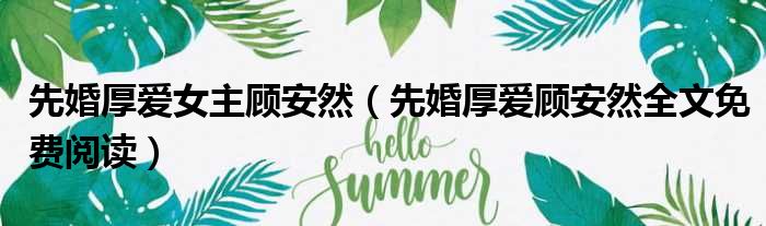 先婚厚爱女主顾安然(先婚厚爱顾安然全文免费阅读)