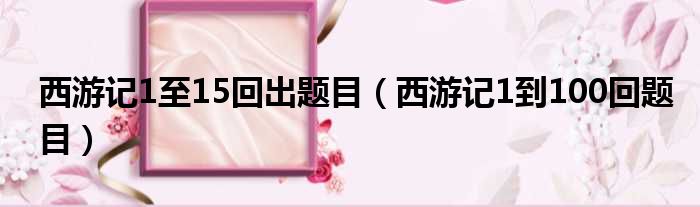 大家好,小东方来为大家解答以上的问题。西游记1至15回出题目,西游记1到100回题目这个很多人还不知道,现在让我们一起来看看吧!