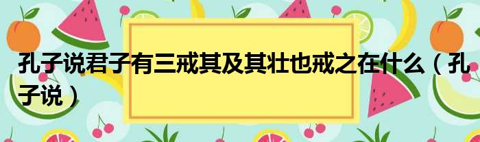 孔子说君子有三戒其及其壮也戒之在什么(孔子说)