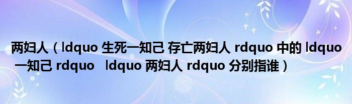 两妇人(ldquo 生死一知己 存亡两妇人 rdquo 中的 ldquo 一知己 rdquo ldquo 两妇人 rdquo 分别指谁)