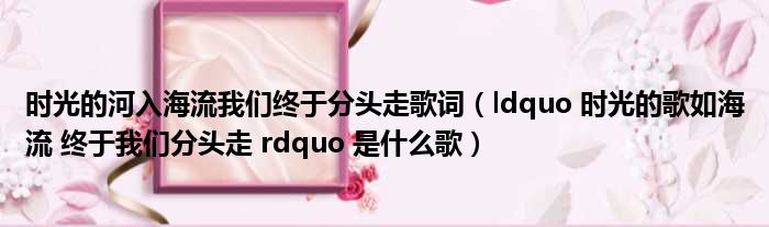 时光的河入海流我们终于分头走歌词(ldquo 时光的歌如海流 终于我们分头走 rdquo 是什么歌)