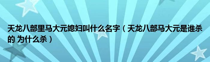 天龙八部里马大元媳妇叫什么名字(天龙八部马大元是谁杀的 为什么杀)