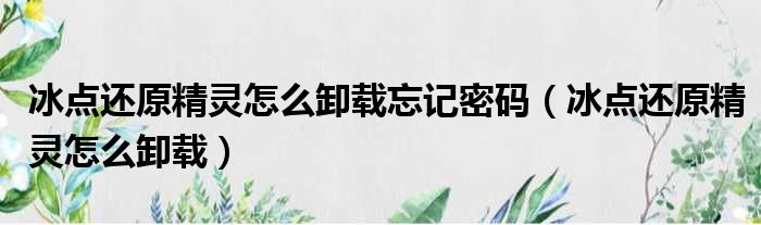 冰点还原精灵怎么卸载忘记密码(冰点还原精灵怎么卸载)