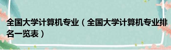 全国大学计算机专业(全国大学计算机专业排名一览表)