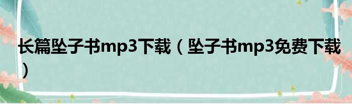 长篇坠子书mp3下载(坠子书mp3免费下载)