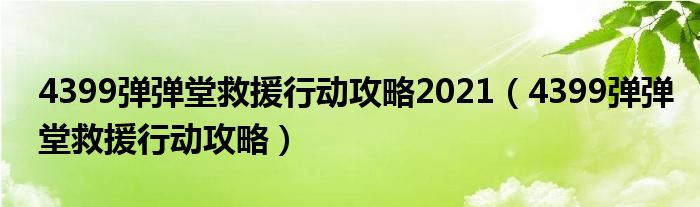 4399弹弹堂救援行动攻略2021(4399弹弹堂救援行动攻略)