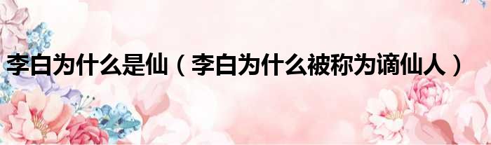 大家好,小东方来为大家解答以上的问题。李白为什么是仙,李白为什么被称为谪仙人这个很多人还不知道,现在让我们一起来看看吧!