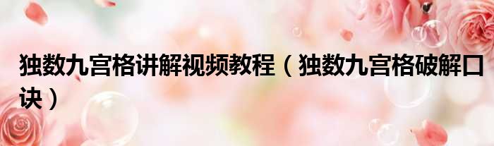独数九宫格讲解视频教程(独数九宫格破解口诀)