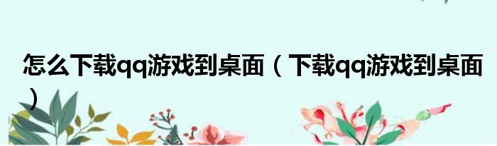 怎么下载qq游戏到桌面(下载qq游戏到桌面)