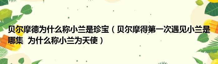 贝尔摩德为什么称小兰是珍宝(贝尔摩得第一次遇见小兰是哪集 为什么称小兰为天使)