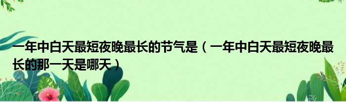一年中白天最短夜晚最长的节气是(一年中白天最短夜晚最长的那一天是哪天)