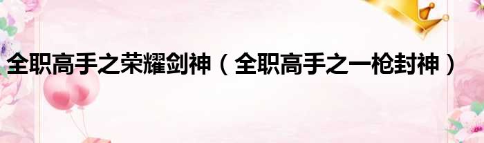 全职高手之荣耀剑神(全职高手之一枪封神)