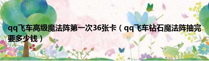qq飞车高级魔法阵第一次36张卡(qq飞车钻石魔法阵抽完要多少钱)