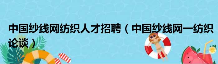中国纱线网纺织人才招聘(中国纱线网一纺织论谈)