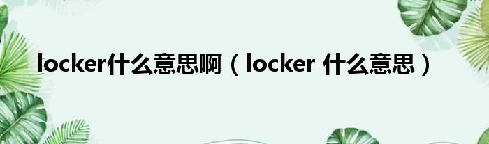 大家好,小东方来为大家解答以上的问题。locker什么意思啊,locker 什么意思这个很多人还不知道,现在让我们一起来看看吧!