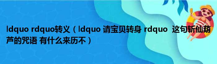 ldquo rdquo转义(ldquo 请宝贝转身 rdquo 这句斩仙葫芦的咒语 有什么来历不)