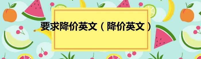 大家好,小东方来为大家解答以上的问题。要求降价英文,降价英文这个很多人还不知道,现在让我们一起来看看吧!