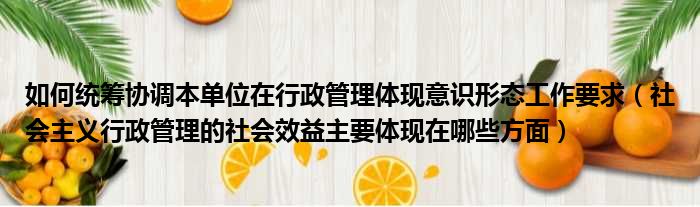 如何统筹协调本单位在行政管理体现意识形态工作要求(社会主义行政管理的社会效益主要体现在哪些方面)