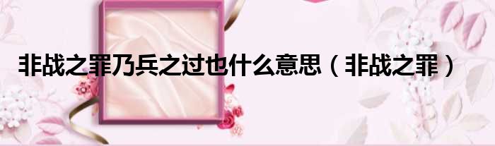 大家好,小东方来为大家解答以上的问题。非战之罪乃兵之过也什么意思,非战之罪这个很多人还不知道,现在让我们一起来看看吧!