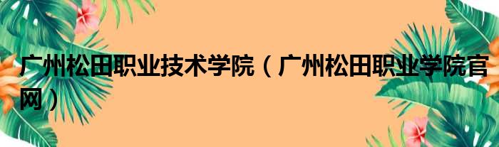 大家好,小东方来为大家解答以上的问题。广州松田职业技术学院,广州松田职业学院官网这个很多人还不知道,现在让我们一起来看看吧!