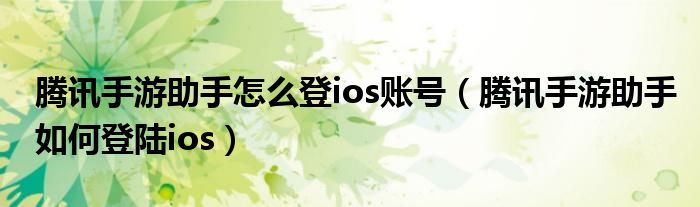 腾讯手游助手怎么登ios账号(腾讯手游助手如何登陆ios)