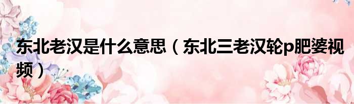 东北老汉是什么意思(东北三老汉轮p肥婆视频)