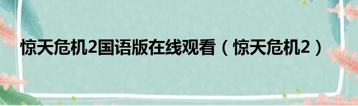 大家好,小东方来为大家解答以上的问题。惊天危机2国语版在线观看,惊天危机2这个很多人还不知道,现在让我们一起来看看吧!